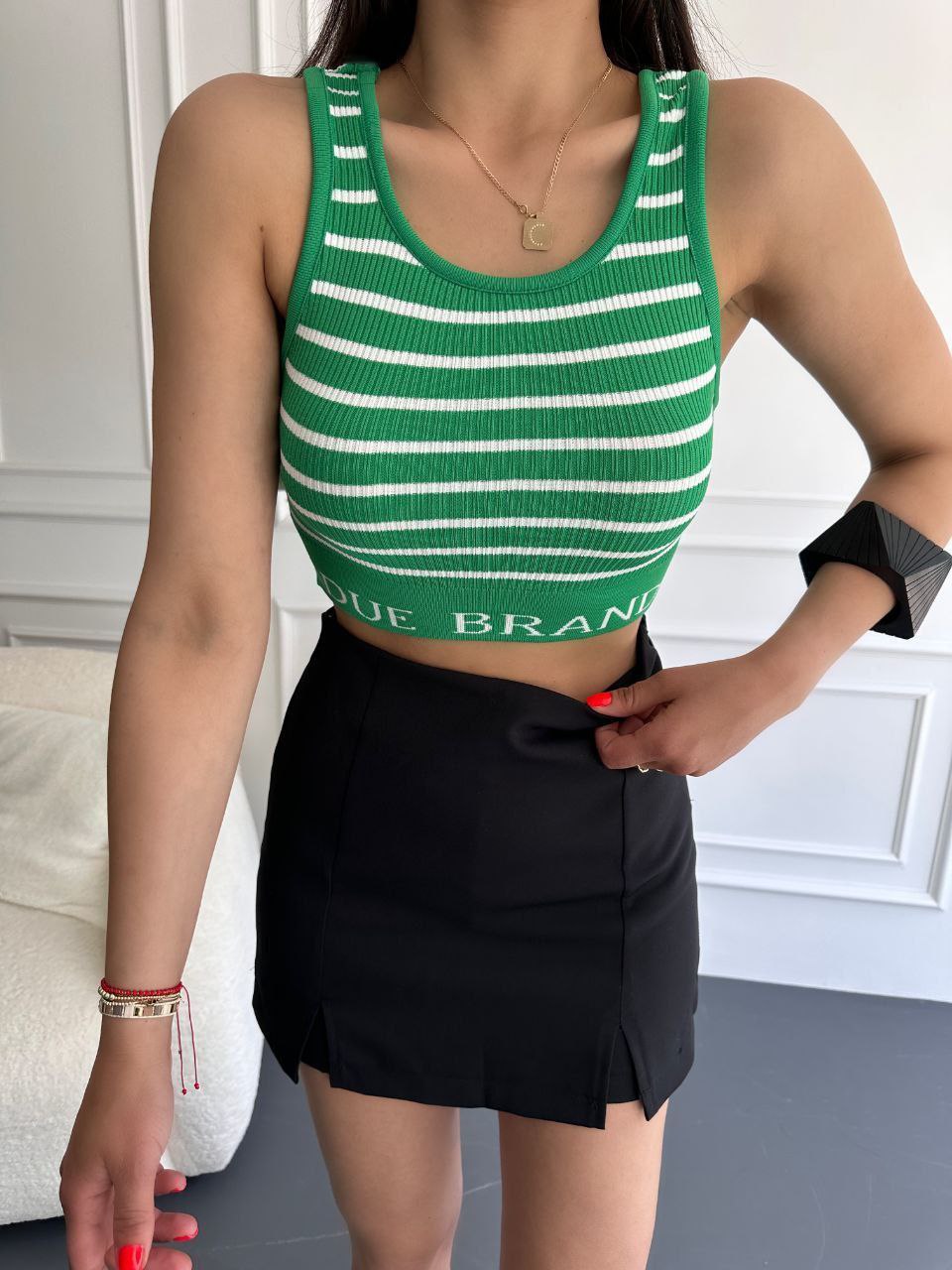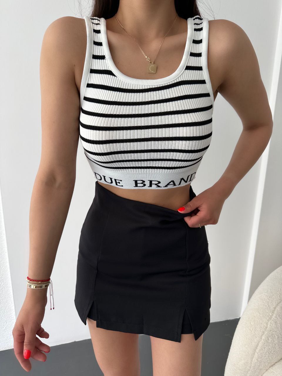 Crop Çizgili Triko Bluz DUE BRAND